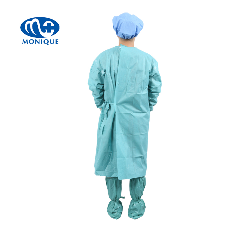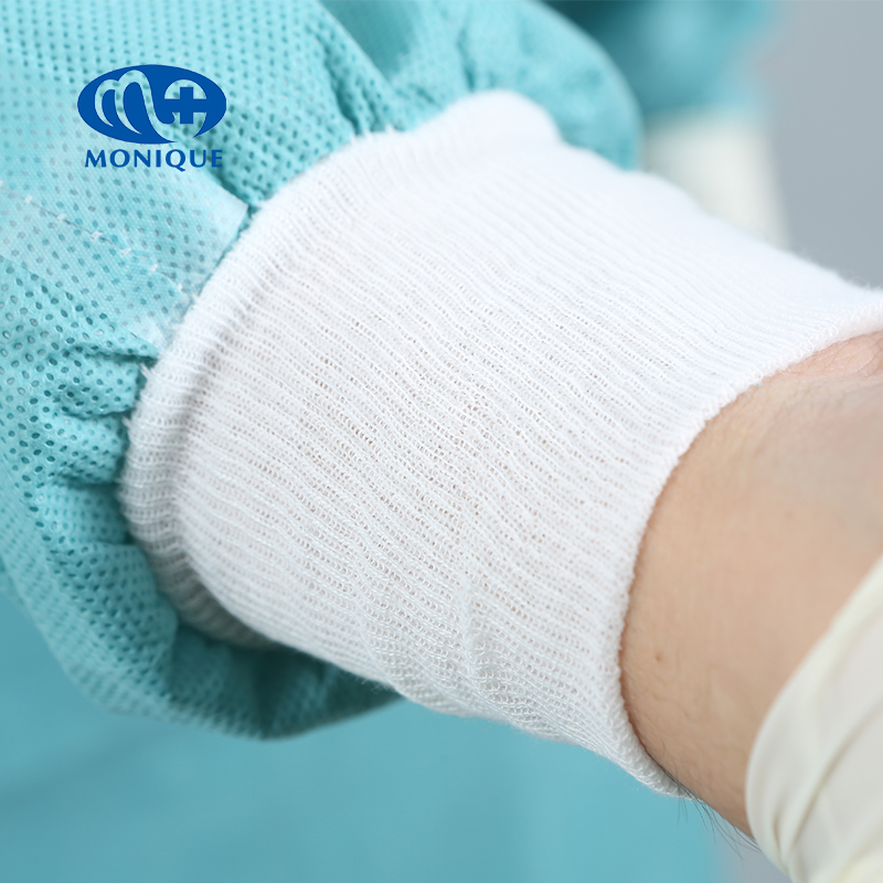 วัสดุ: โดยปกติแล้วจะใช้วัสดุคอมโพสิตไม่ทอหลายชั้น เช่น SMS (ผ้าสปันบอนด์-เมลท์โบลน-สปันบอนด์) หรือ SMMS (ผ้าสปันบอนด์-เมลท์โบลน-เมลท์โบลน-สปันบอนด์) วัสดุเหล่านี้มีคุณสมบัติกั้นที่ดี ระบายอากาศได้ และความสบาย ออกแบบให้มีปลอกแขนแบบเกลียวเสริมความแข็งแรง การออกแบบการสึกหรอแบบย้อนกลับ ฯลฯ เพื่อปรับปรุงการปิดผนึกและความสบายในการสวมใส่